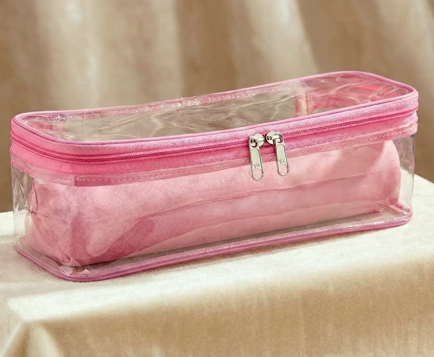 This elegant transparent bangle organizer is designed to keep your bangles neatly arranged and beautifully displayed. The clear body allows easy visibility, while the soft padded roll protects your jewelry from scratches and damage. Stylish, compact, and practical, it’s the perfect storage solution for keeping your bangles organized at home or while traveling.